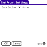 | Select "Home Screen" or "Go Backward". "Home Screen" shows the CLIÉ handheld "HOME Screen" rather than the Home page set in "NetFront Settings" (3/4 [Home Settings]). "Go Backward" displays the previous page. |
