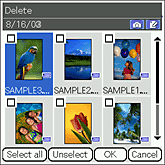 To select all the displayed files, tap Select all. Note that you must separately tap Select all for your CLIÉ handheld and "Memory Stick™" media.