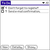 Or, tap To Do List on the CLIE Launcher screen. You can also start the application by pressing the To Do List button on the front panel.
